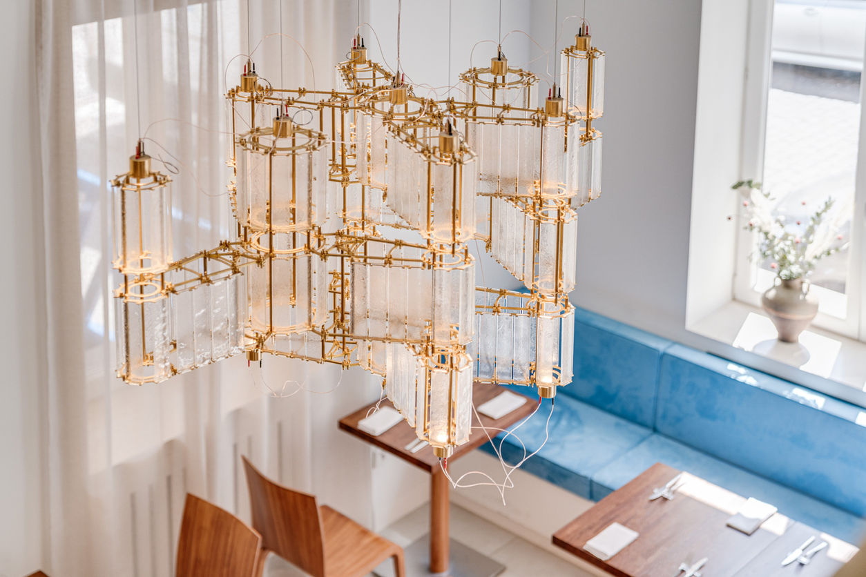 The multibranched chandeliers feature intricate branching forms that add depth and movement, creating a striking centerpiece while complementing simpler elements. They can be customized for site-specific installations, balancing style and functional lighting.